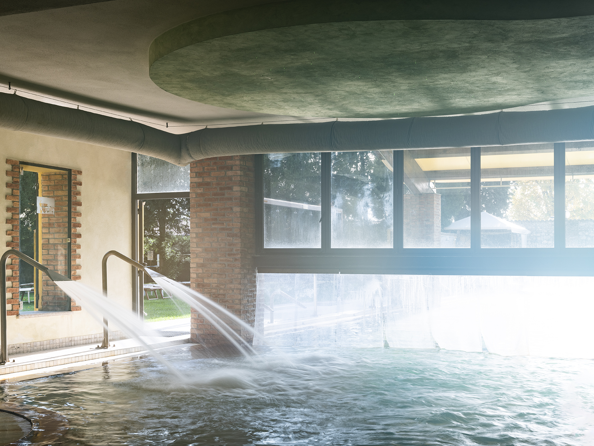 È dotata di molti idromassaggi e di fontane per terapie cervicali e lombari.