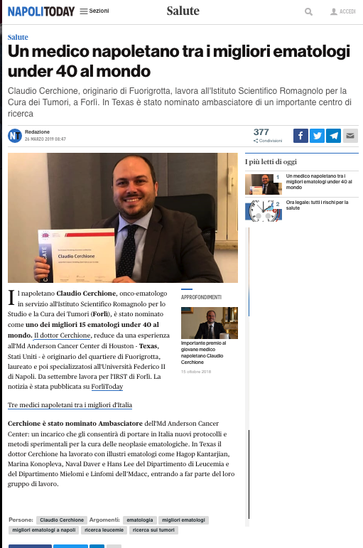 - Dal 2018 Dirigente Medico Ricercatore presso la divisione di Ematologia dell’Istituto Scientifico Romagnolo per lo Studio e la Cura dei Tumori (IRST) IRCCS (Meldola, FC), dove offriamo la diagnostica più avanzata e le migliori opportunità terapeutiche, con terapie personalizzate per tutti i pazienti affetti da neoplasie oncoematologiche;